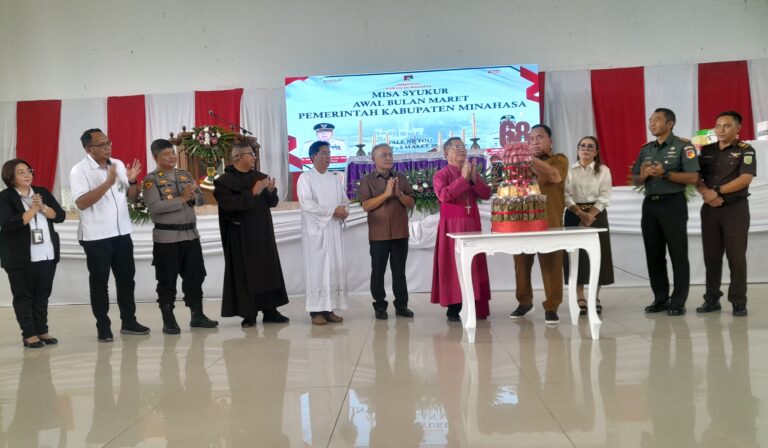 Suasana kemudian berlanjut khidmat dalam Misa Syukur yang dipimpin Uskup Manado, Mgr. Benedictus Estephanus Rolly Untu. Dalam pesannya, Uskup mengajak seluruh peserta untuk mengedepankan nilai-nilai kemanusiaan.