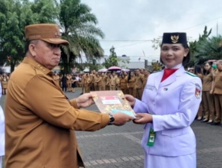 Pada kesempatan itu, Bupati memberikan penghargaan kepada anggota Pasukan Pengibar Bendera Pusaka (Paskibraka) Kabupaten Minahasa berupa piagam dan tabungan.