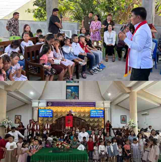 “Yesus sangat mengasihi anak-anak. Karena itu, kalian juga harus belajar saling mengasihi,” ucapnya lembut, disambut anggukan dan senyum para siswa Sekolah Minggu.