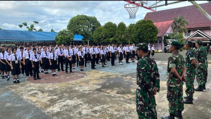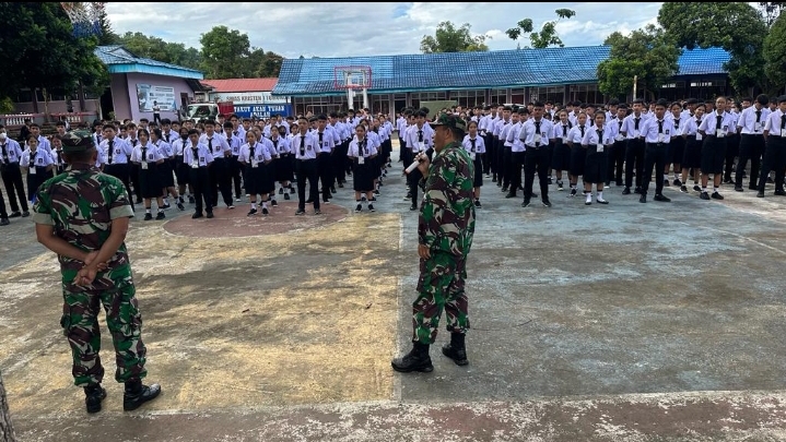 “Saat ini di seluruh Sekolah sedang melaksanakan masa pengenalan lingkungan sekolah terhadap para Siswa-siswi baru, untuk kami sebagai aparat kewilayahan, perlu mendatangi sekolah-sekolah tersebut melakukan pengenalan materi PBB, agar dalam pelaksanaan apel pagi maupun Upacara bendera para siswa-siswi baru sudah bisa menyesuaikan dengan kakak-kakak kelasnya,” jelas Kapten Sonlay.