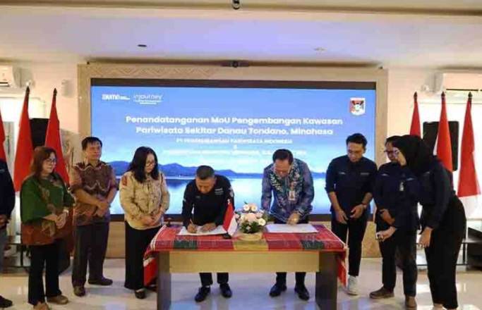 MINAHASA, MANIMPANG.com — Bupati Minahasa, Dr. Noudy R.P. Tendean, S.IP, M.Si, menandatangani Nota Kesepahaman (MoU) tentang Pengembangan Kawasan Pariwisata di sekitar Danau Tondano antara Pemerintah Kabupaten Minahasa dan Injourney Tourism Development Corporation (ITDC). Penandatanganan ini berlangsung di Kantor ITDC Mandalika, Nusa Tenggara Barat.