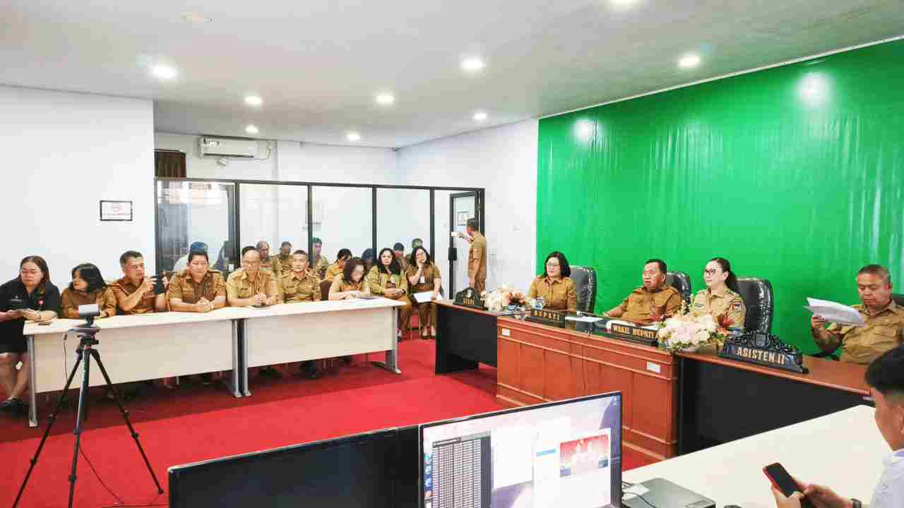 MINAHASA, MANIMPANG.com — Bupati Minahasa Robby Dondokambey, S.Si, MAP, bersama Wakil Bupati Vanda Sarundajang, SS, mengikuti rapat koordinasi nasional yang membahas pengendalian inflasi dan evaluasi keterlibatan pemerintah daerah dalam Program Nasional 3 Juta Rumah. Rapat yang digelar secara daring itu dipimpin Sekretaris Jenderal Kementerian Dalam Negeri, Tomsi Tohir, dan diikuti dari Command Center Kantor Bupati Minahasa, Senin (14/7/25).