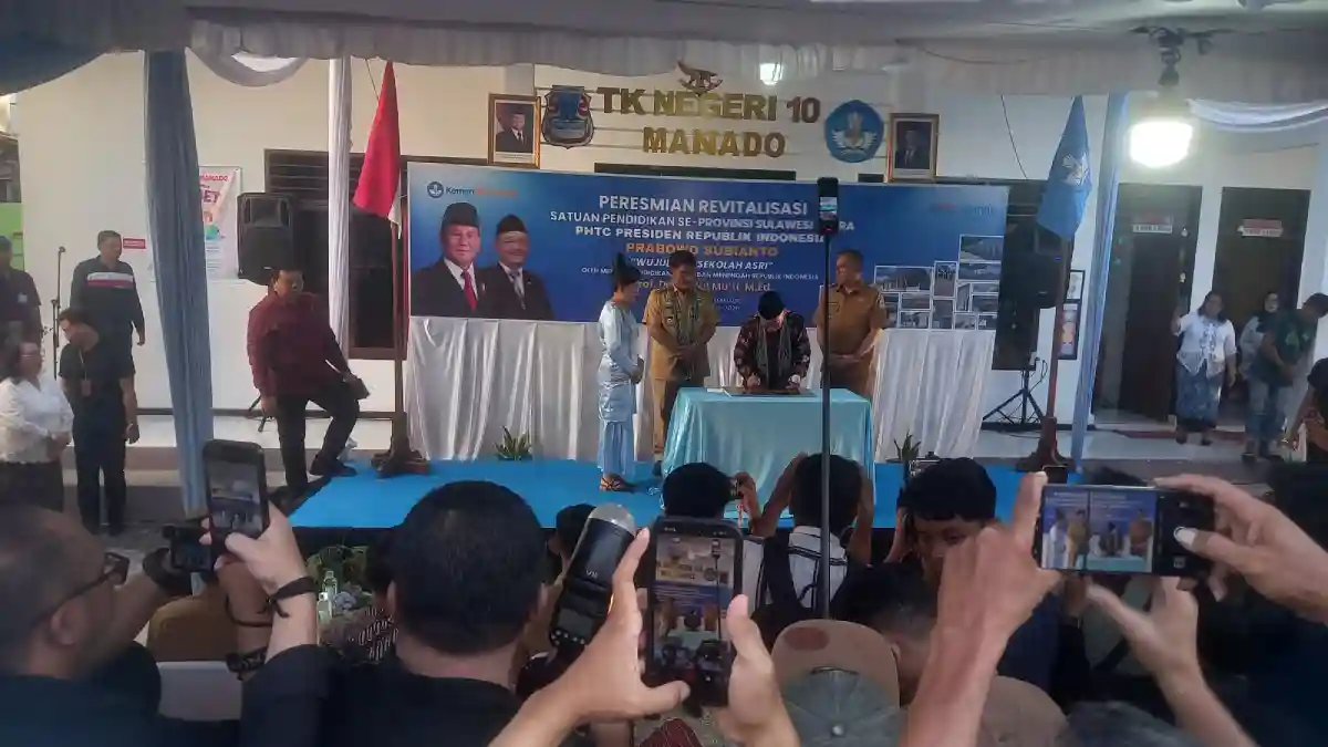 MANADO, MANIMPANG.com — Suasana haru dan semangat kebangsaan mewarnai acara peresmian revitalisasi satuan pendidikan se-Provinsi Sulawesi Utara yang berlangsung di TK Negeri 10 Manado.