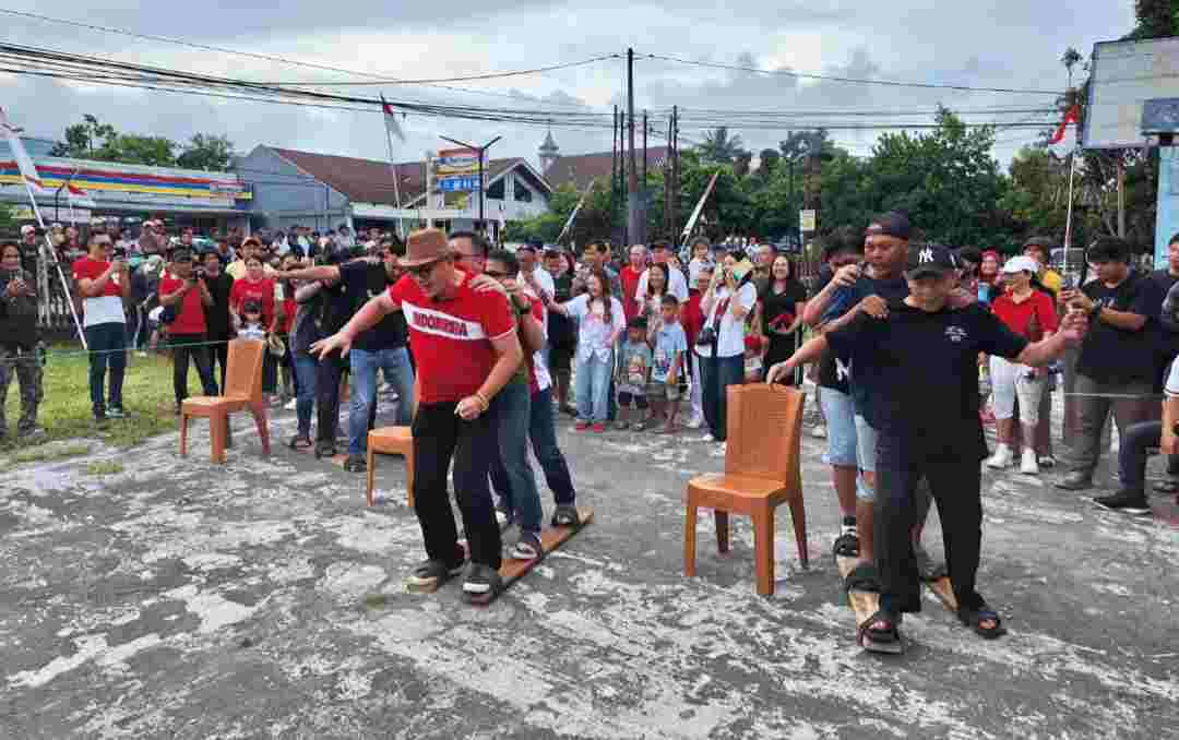Suara sorak sorai dan tawa pecah, menggema seakan menepis kesunyian sore. Di antara terpal, balon, dan tiang pinang yang menjulang licin berlumur oli, masyarakat bersama para pejabat larut dalam semangat perayaan Hari Ulang Tahun ke-80 Kemerdekaan Republik Indonesia.